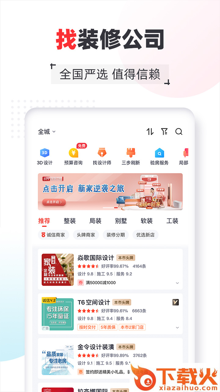 【口碑装修公司】年度用户推荐口碑装修公司,新房、二手房、局装、工装全面覆盖!装修设计,标准化施工,工地直播,第三方监理,省钱省心有保障!