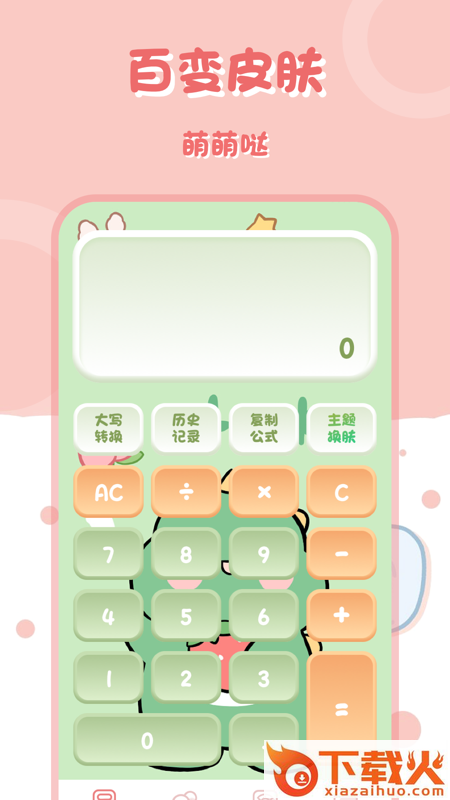 【计算器】多种可爱皮肤随心切换。可保留历史计算数据的日常计算器,计算结果可一键转换大小写,方便用户的操作,尤其是在计算结果较大的情况下。