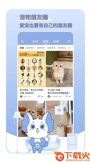 我们还有宠物社区,爱宠也要有自己的朋友圈,满足铲屎官晒宠物的需求,还可以和其他的铲屎官们一起交流互动。