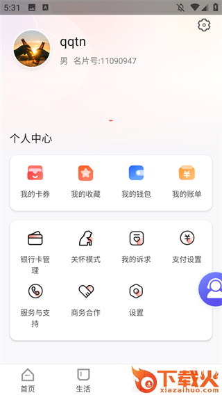 4、主页界面用户可以查看自己的钱包,账单,各种服务管理设置;