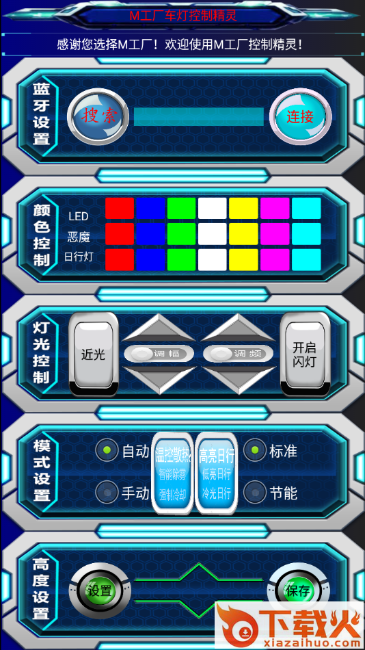 M工厂精灵app是专为小牛M系/N系大灯用户制作,软件可以帮助用户手机连接设备,实现颜色控制,灯光控制,模式设置等等功能,需要的朋友欢迎前来下载使用。