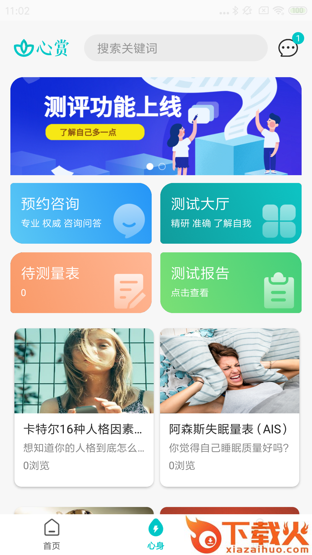 心赏app是一款心理服务平台,平台拥有心理测评,咨询预约等等丰富功能,可以帮助更好的心理健康,需要的朋友欢迎前来下载使用。