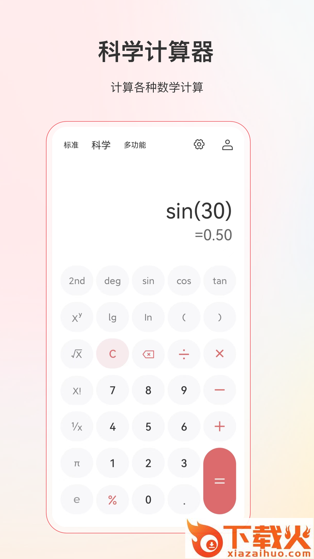 计算器、科学计算器、分数计算器、房贷计算器、个税计算器、存储转换、BIM指数计算、汇率换算、亲戚称呼计算、进制转换、铲毒转换、温度转换、进制转换、质量转换、面积转换等为一体的全能计算器,
