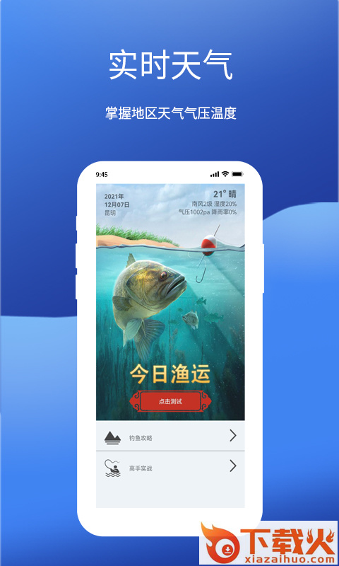 钓鱼天气:实时掌握钓鱼天气,不需要位置权限,实现不打扰,无推送。