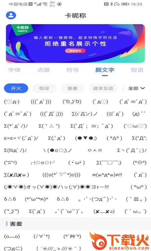 花样文字,特殊字符,个性字符等大量的昵称字符,还有表情字符,卡住自己喜欢的昵称!