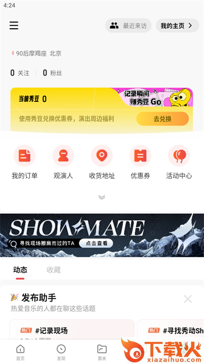 秀动app,让你在手机上便捷可购买演唱会门票,提供了演出日历,让你知道不再错过每天的精彩演出,还有优惠券为你购票打折哦!