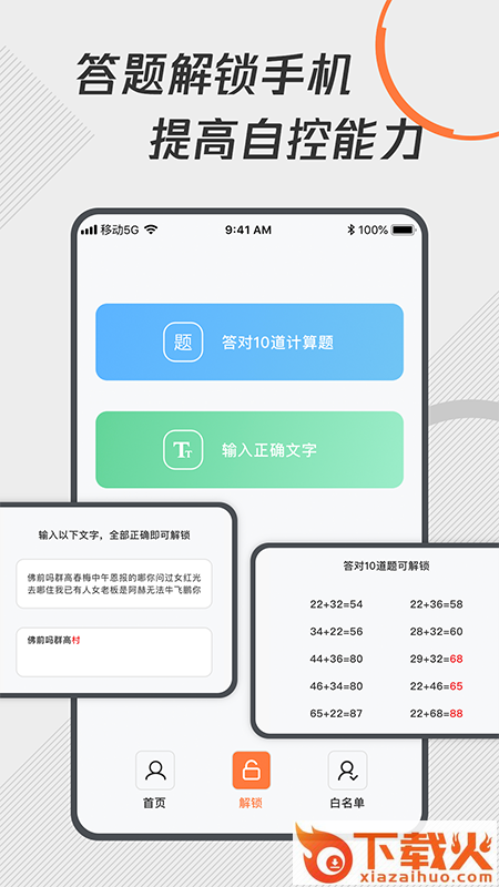 2、答题解锁手机,提高自控能力