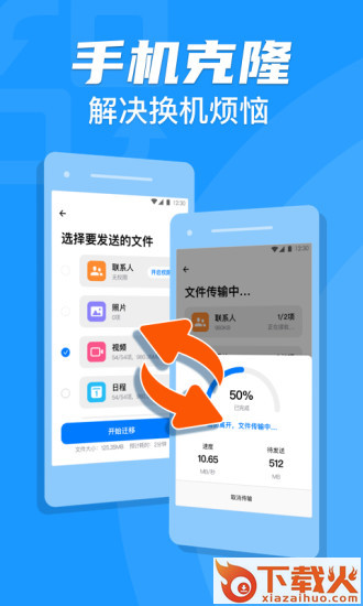 手机克隆换机助手是一款非常实用的支持手机之间传输文件的软件,软件功能非常强大,里面提供安装包、文件、照片、视频等传输服务,操作非常简单,传输速度快,能够让用户换机更轻松,有需要的朋友快来下载吧!