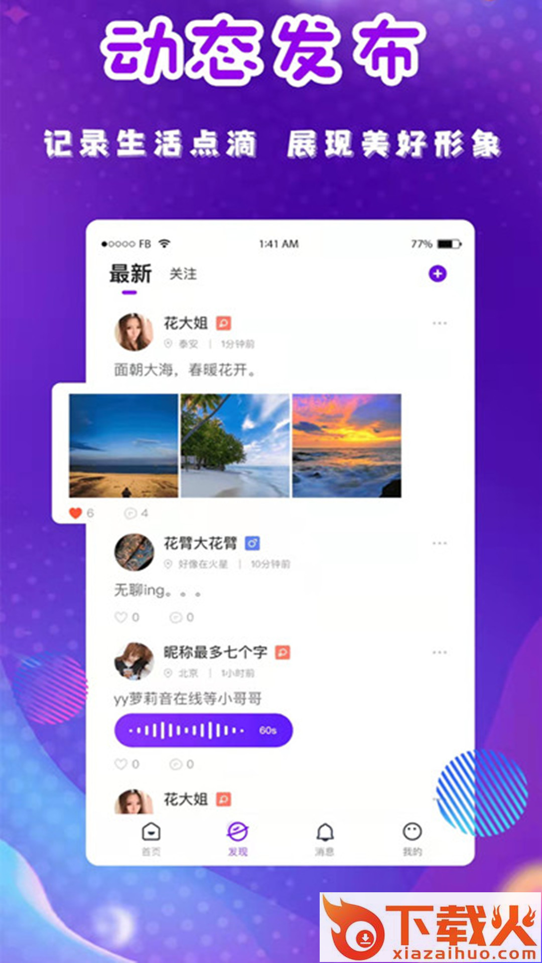 咪呐app,分享精彩动态,轻松沟通交流,探讨感兴趣内容,认识更多小伙伴,随时随地放心交友,多样玩法尽在其中,认识来自各地的小伙伴,交友更轻松。