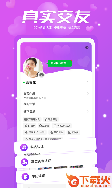2、真实交友 100%实名认证 多重审核 安全靠普