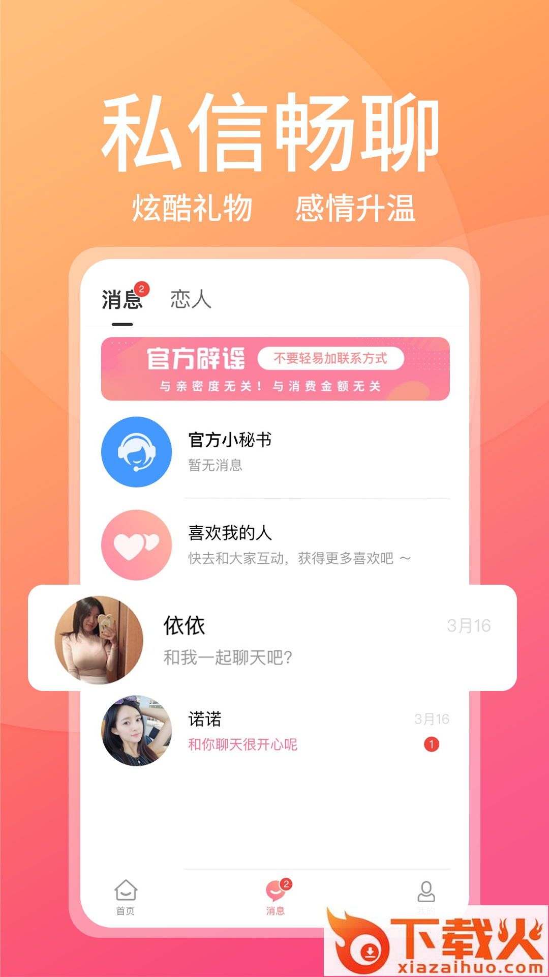 给你网聊恋爱的感觉,是一款真正的聊天社交软件。