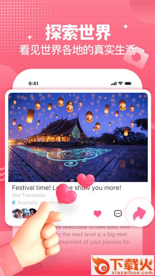 在动态广场向全世界展示自我,也能阅览世界各地有趣的生活并和他们互动。