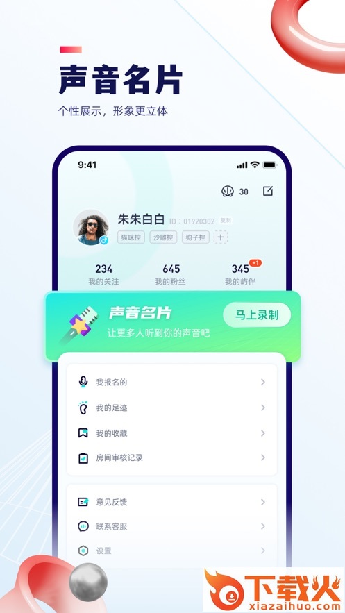 - 以兴趣为基础,以主题为核心,你可以用声音交换热爱;无论是聊童年,梦想,还是旅行,职场,总能遇见经历相似聊伴,开启相见恨晚的聊天;