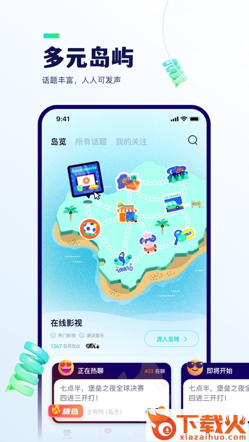 屿聊app是一款互动社交软件,软件拥有公开房间,私密房间,兴趣小组等等丰富功能,可以给予用户更有趣的社交互动体验,欢迎前来下载使用。...