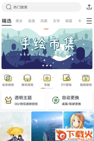 精美手机主题,不同于壁纸大全,壁纸多多,秀壁纸,精选壁纸的桌面风格层出不穷,透明壁纸、文字壁纸、明星爱豆、抖音网红壁纸总有你所爱。