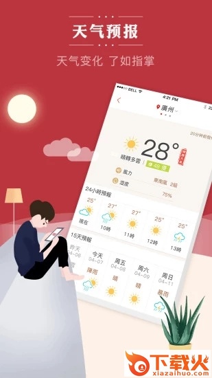 2、天气预告:提供一周天气预告,穿衣建议,让你出门既有温度又有 风度。