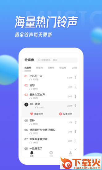 海量铃声,各种风格的歌曲都有,并且还会有最新的铃声实时推荐。