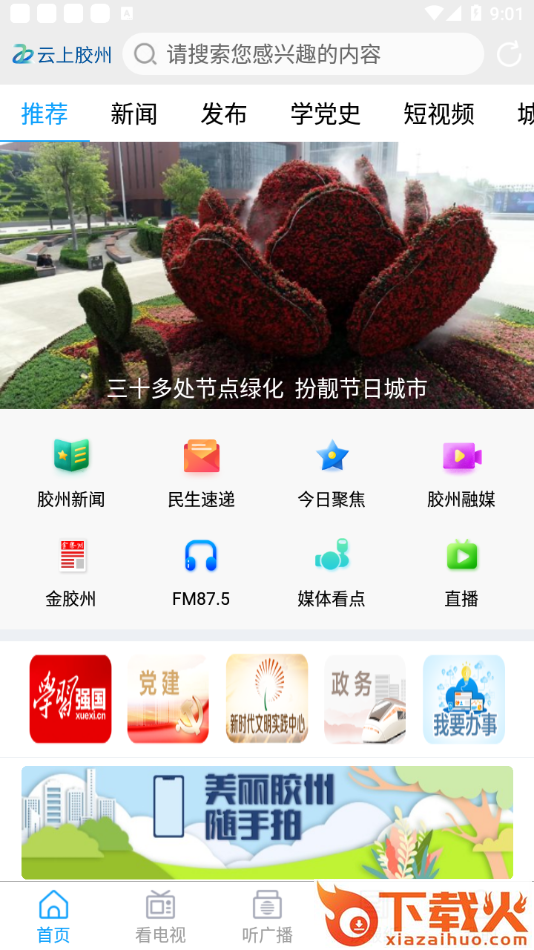 打开“云上胶州”APP,随时随地看电视、听广播、读报纸;速览时政新闻、精彩短视频、生活资讯,提供政务服务、便民服务,参与“美丽胶州随手拍”“积分赢大奖”“直播抢红包”等互动活动。