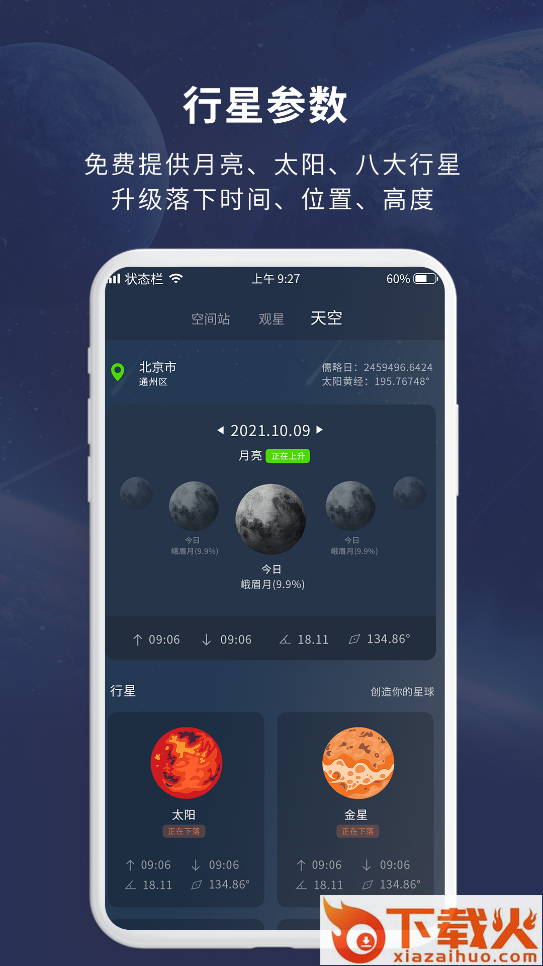 免费提供毫秒级月亮、太阳、八大行星升级落下时间、位置、高度