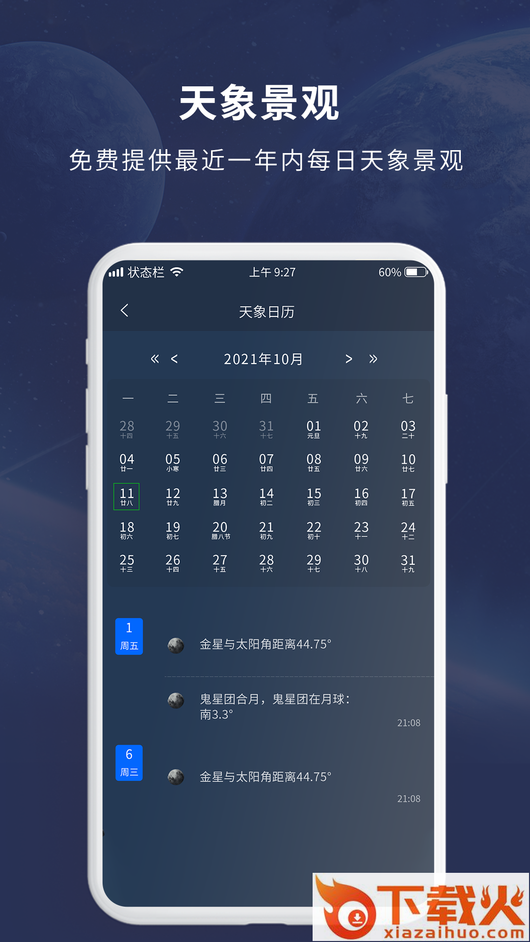 免费提供最近一年内每日天象景观