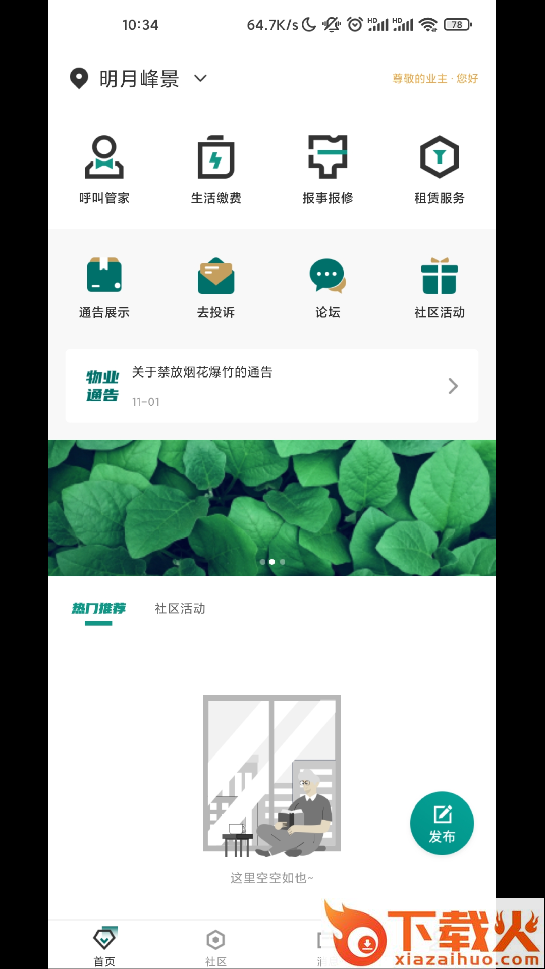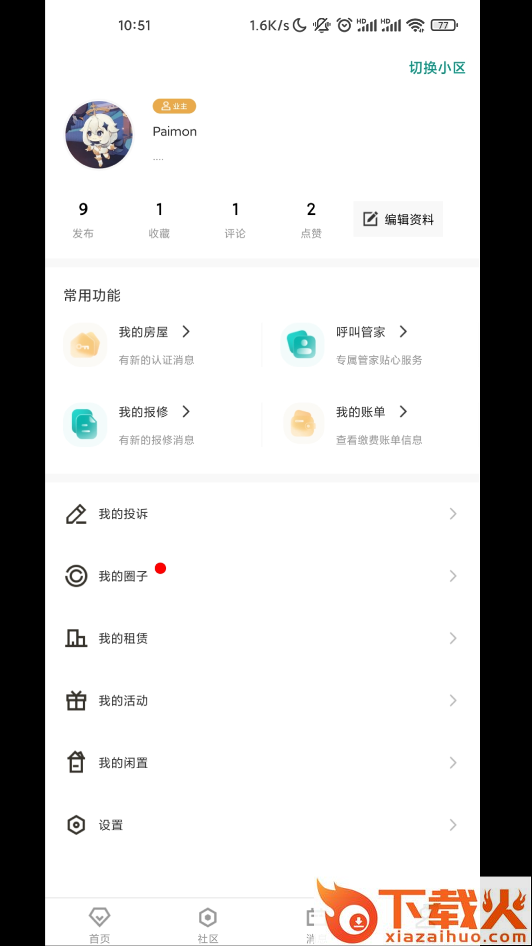 3、在小区里面可以报事报修、发布租赁、创建建圈子、发论坛、发活动;