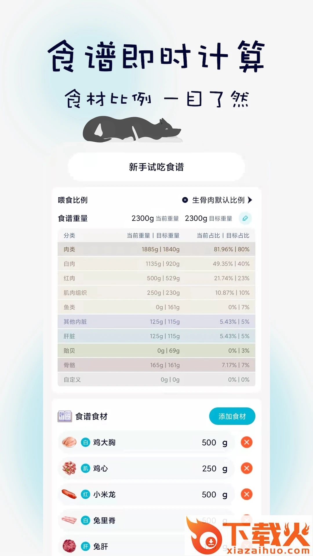3.生骨肉配比计算,精准计算克比;