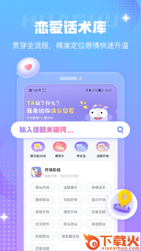 蜜小爱app是一款恋爱话术手机助手,软件拥有丰富的恋爱话术,土味情话等等内容,一键搜索,可以帮助用户更好的聊天恋爱,觉得不错的朋友可以下载试试。