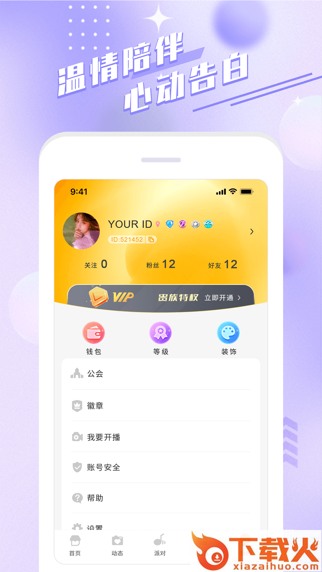 1、参加精彩派对,与他连麦互动,24小时开放游戏。