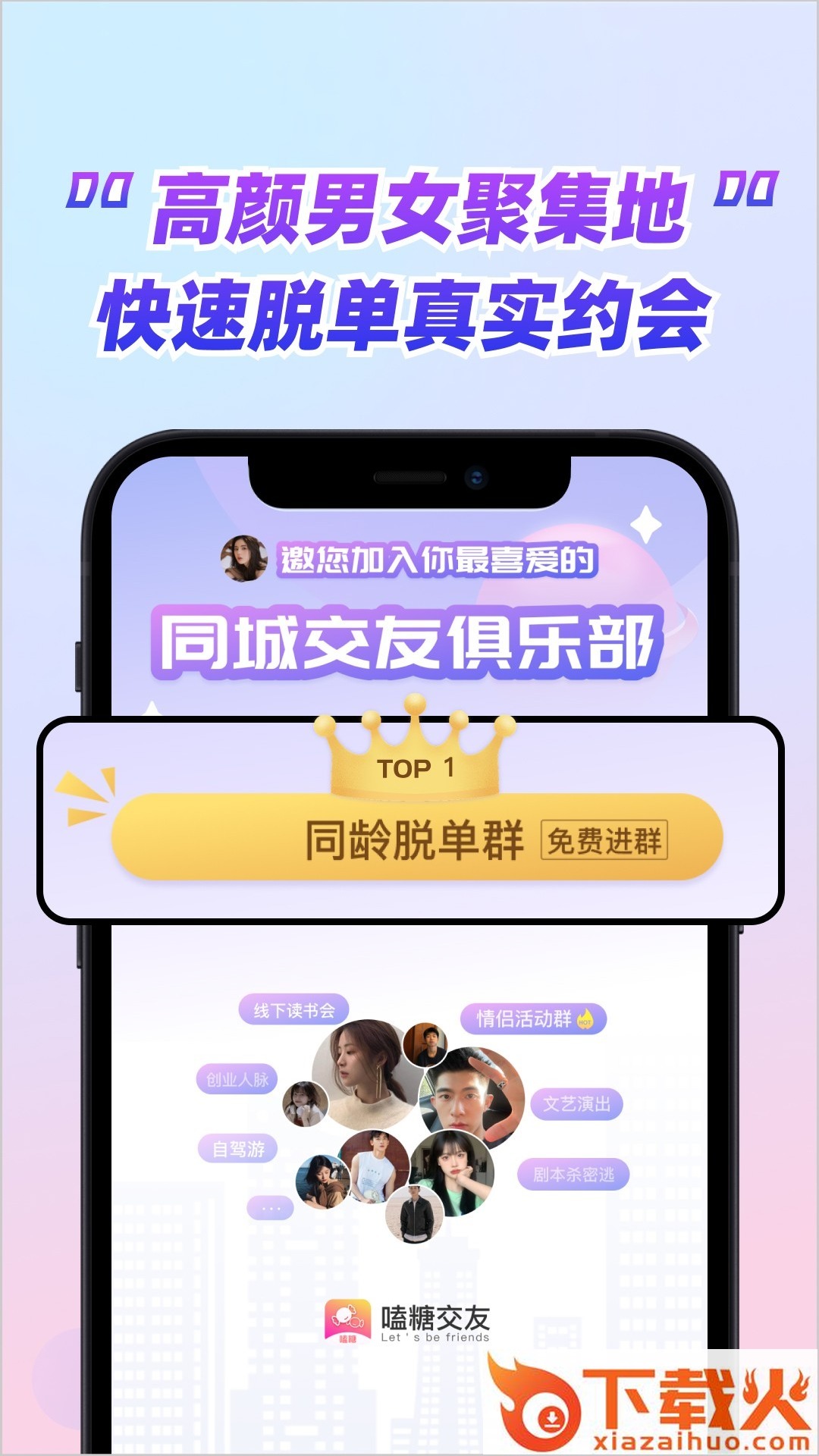 嗑糖交友app,加入感兴趣俱乐部,结识同好,一键聊天沟通,分享个人感兴趣内容,多种话题圈子等你加入,认识附近小伙伴,聊天交友更轻松。