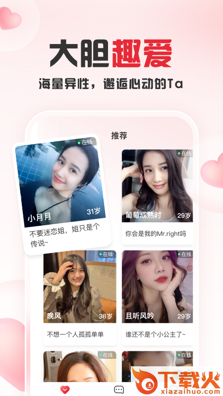 趣爱交友app下载,一款专业便捷的真人视频聊天交友平台,来趣爱交友app实名认证注册,一键开启约会交友模式,红娘牵线视频邂逅,感兴趣就来下载体验!