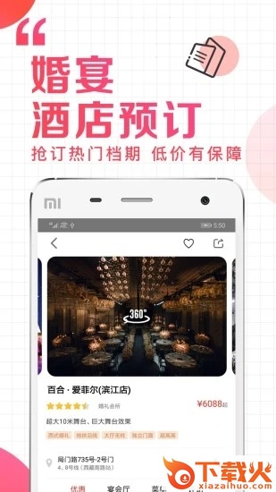 酒店优惠:重磅酒店套餐,准确定位商家,一折享受大牌婚宴;