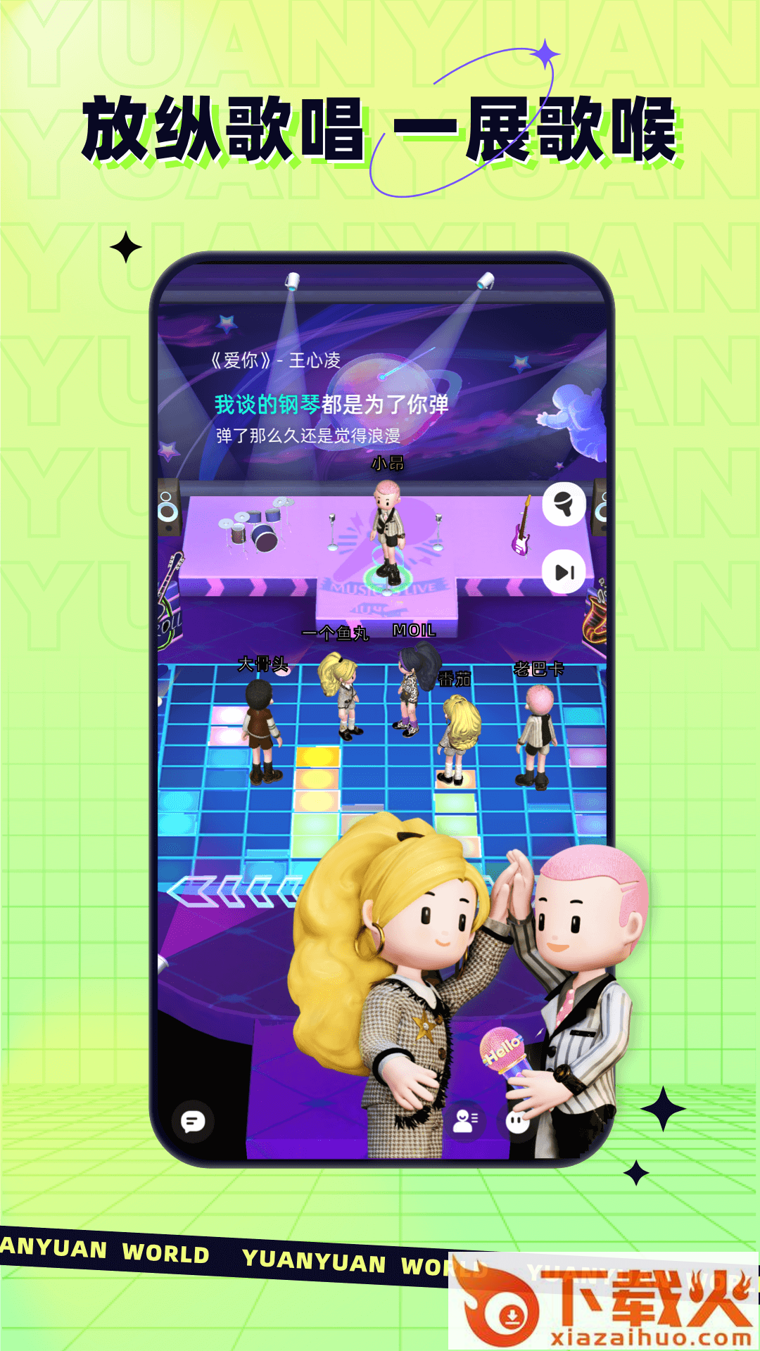 【尽情嗨歌】原原世界中设置了供用户K歌的轰趴馆,在这里有海量歌曲资源,用户可以和小伙伴们尽情歌唱,一展歌喉。