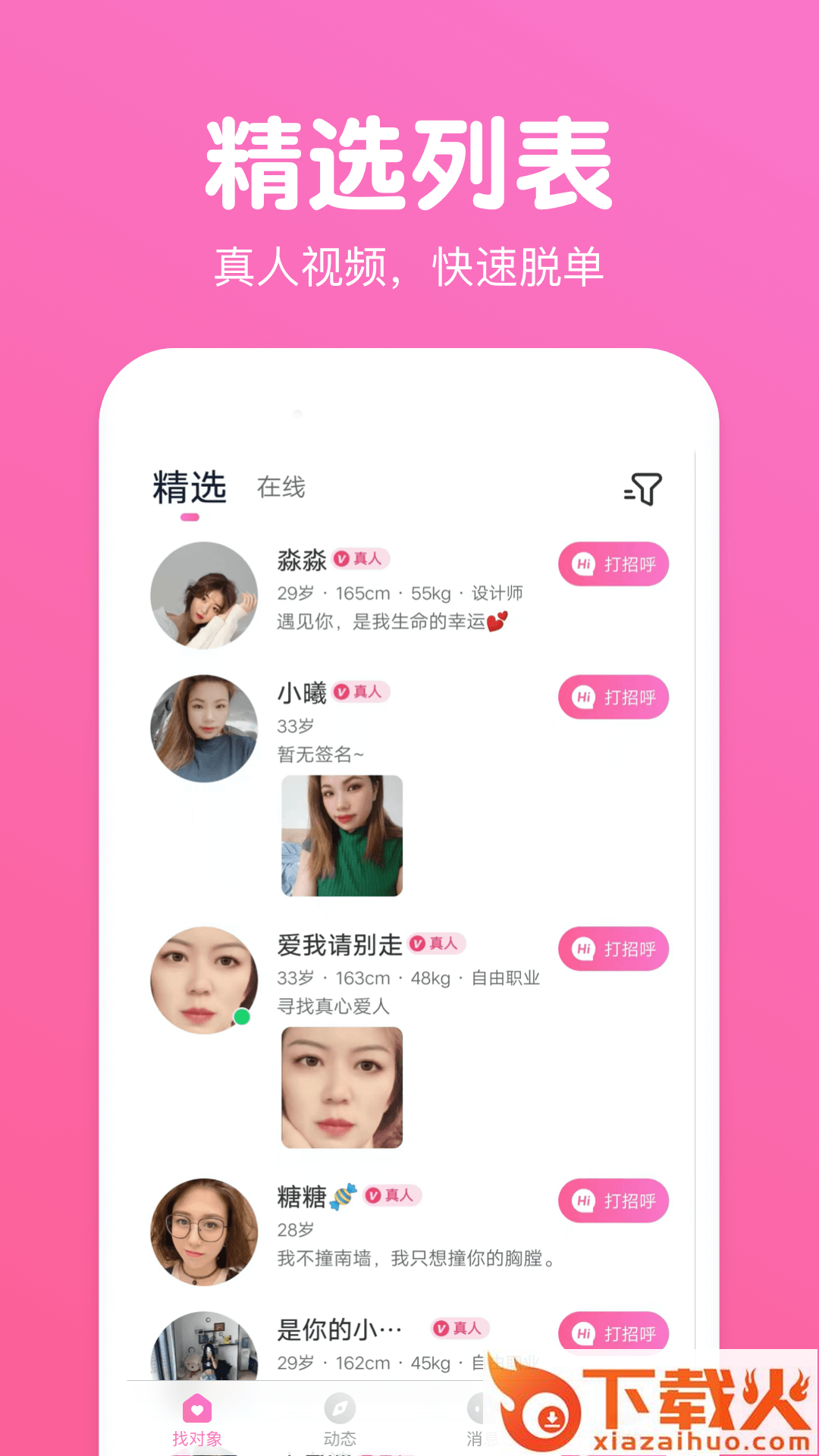 【真人认证】系统+人工双重审核,高颜值、高质量人群的约会聚集地,让你遇见最真实的另一半。