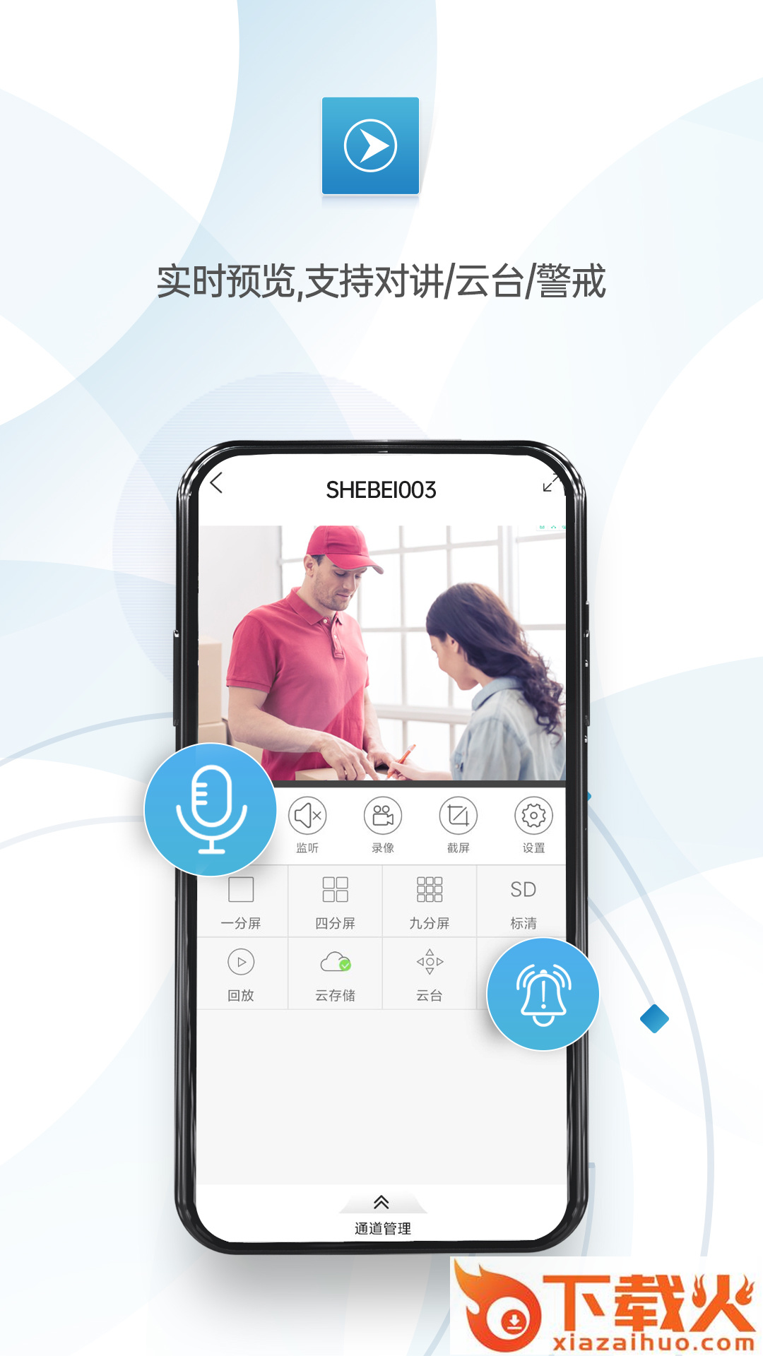 实时预览,支持对讲/云台/警戒