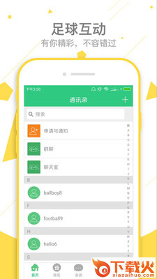 足球互动是一款汇聚足球爱好者的聊天软件,在这里你可以畅所欲言,将你对足球相关的简介全部表达出来。还有精彩视频、资讯、分享等功能等你来体验哦,觉得这款软件还不错的小伙伴快来下载吧!