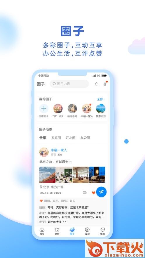 5【圈子】共享各类文件,发布高清原图、视频等动态,互评点赞办公生活新鲜事;
