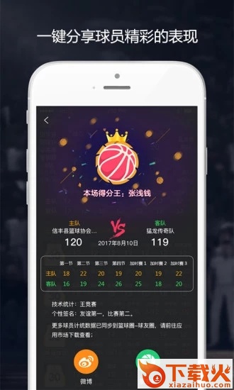 4、记录我的精彩表现,我是得分王,一键分享篮球快乐生活!