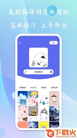 支持从“内置图标”、“手机相册”、“图标包”以及“现有应用”中选取喜欢的图标,如果使用“手机相册”中的图片还可以有更惊喜的体验哦~