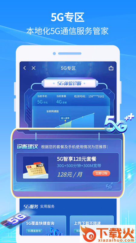 常用服务、话费充值、便捷查询、业务办理、客服咨询,版块清晰,快捷办理。
