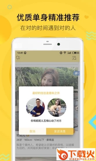 潮有缘app是一款潮汕人专属实名制婚恋APP,你能够在这里随时一对一在线和你喜欢的美女帅哥聊天,拥有的智能匹配推荐技术为你推荐最适合你的,是你真正喜欢的类型的,感兴趣的用户快来下载吧。...