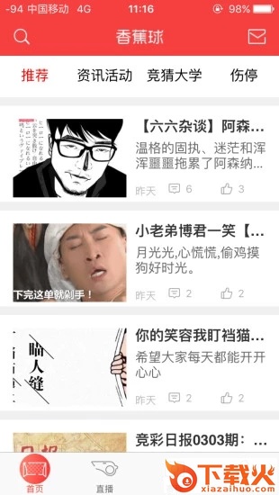 香蕉球app是一款广大聚集球迷互动的社区软件,有了它您可以跟大家一起聊比赛,和志同道合的朋友一起熬夜通宵看球,看球更刺激,还可以及时的掌握最新的赛事比分。...