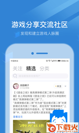 1、游戏垂直领域社区,发现和建立游戏人脉圈。