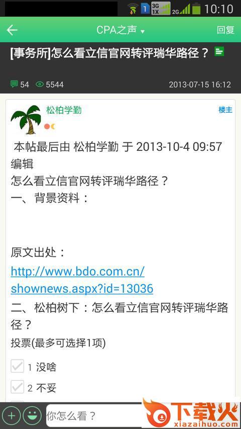 3.中国会计视野论坛APP,可在手机上发贴、看贴、跟贴等。