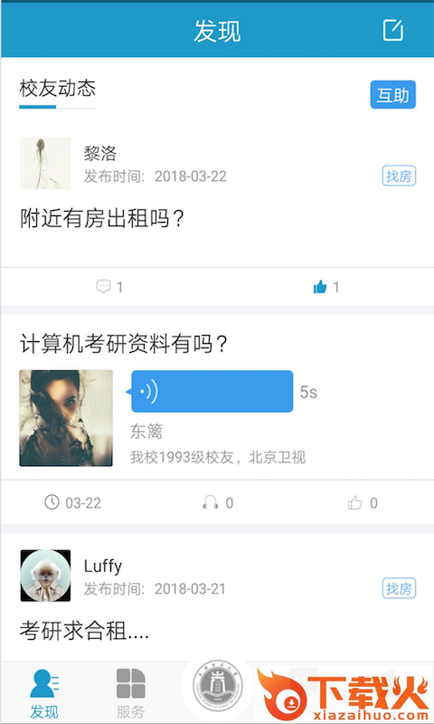 【发现】“同门曰朋,同志曰友”,自由说查看校友动态,活动聚结交共同兴趣爱好的校友