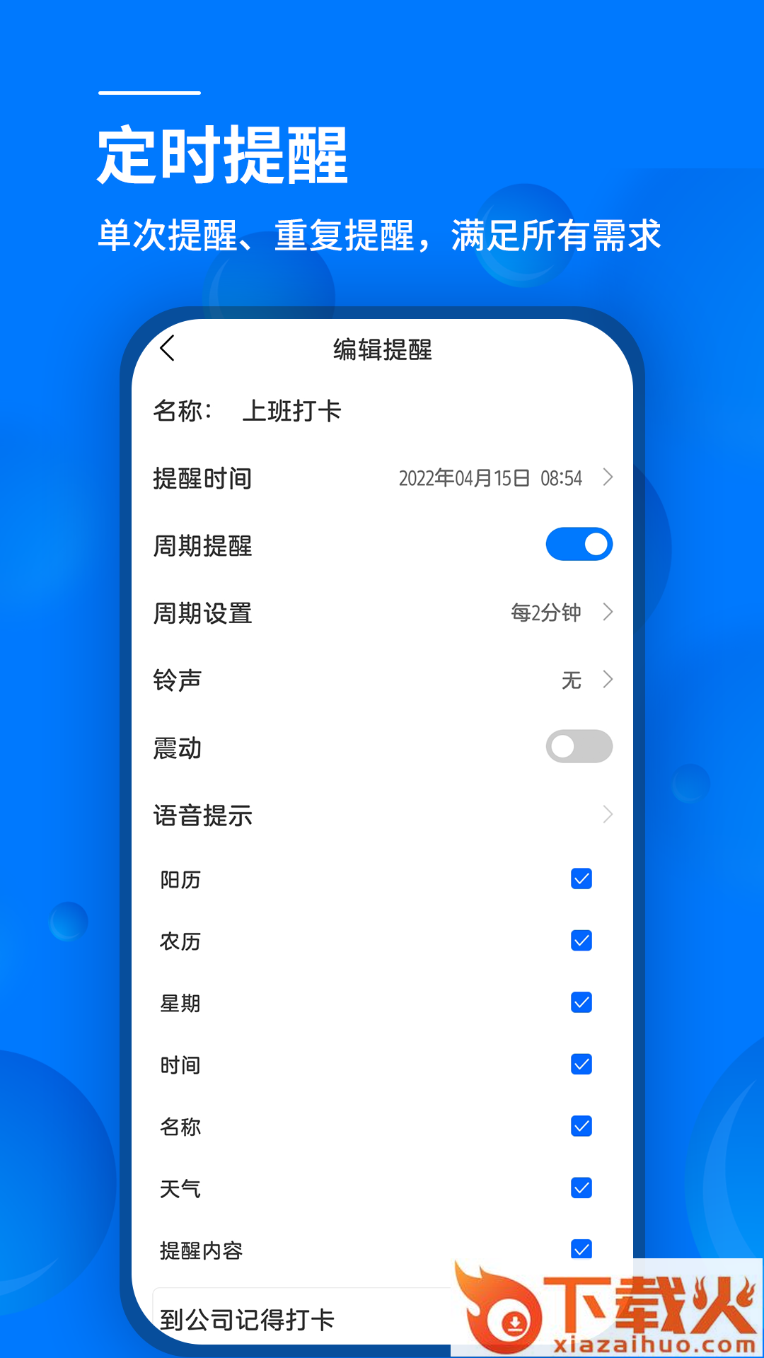 强大的提醒功能,支持单次提醒和循环提醒,只要您设置好所有权限,一定为您提醒起来。