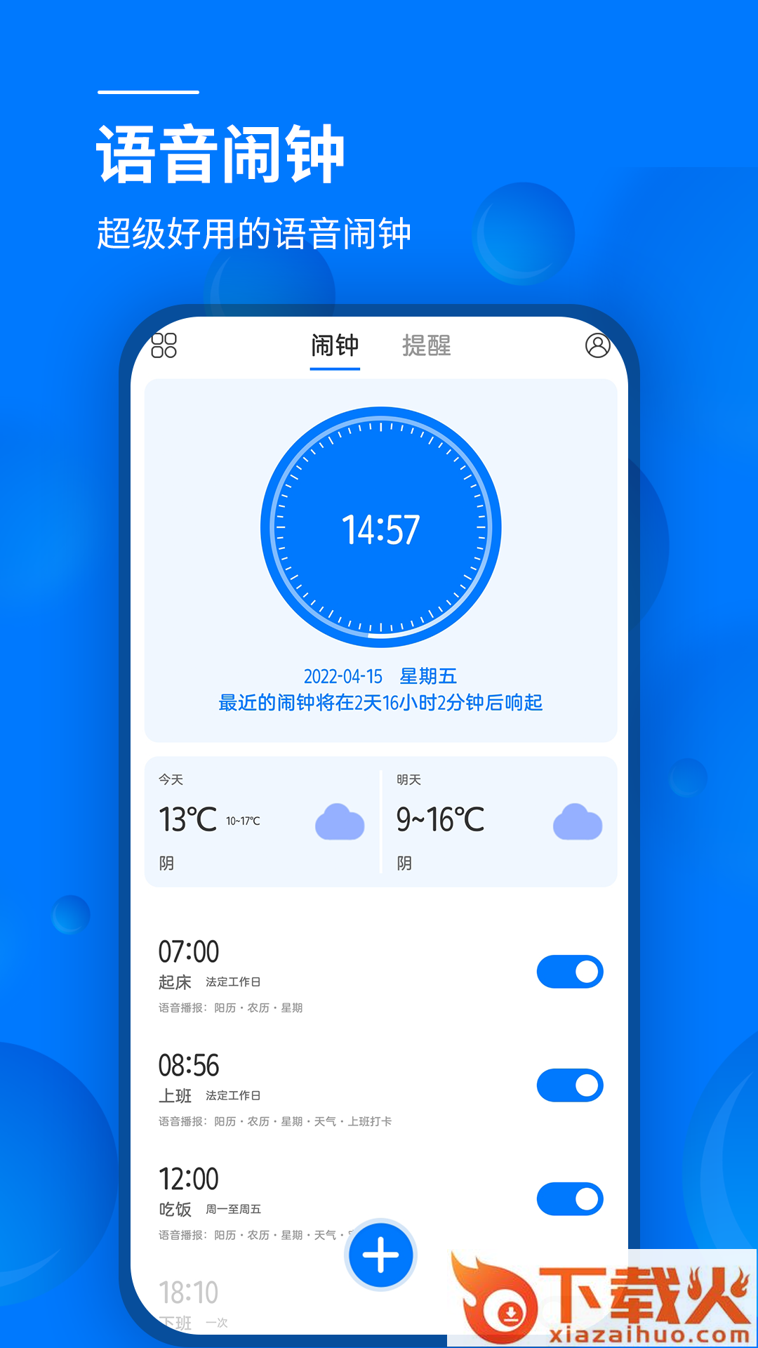 语音闹钟app是一款十分实用的语音闹钟软件。用户可以在这里随时随地进行语音闹钟设置,按时提醒用户,让用户不再迟到,非常的方便,用户还能自定义播报内容,独特播报更有趣。