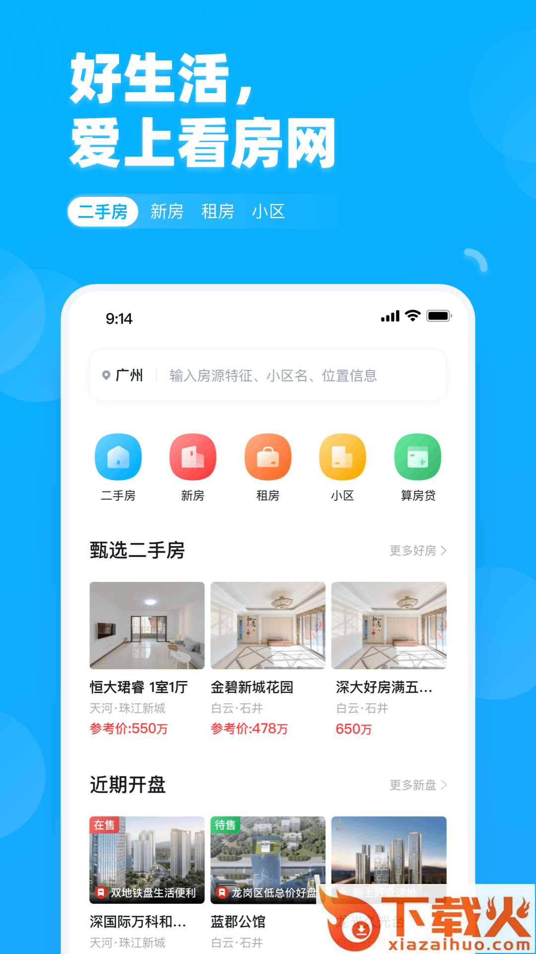 看房网app,及时获取最新房源信息,资源丰富,真实可靠,在线找房,VR看房,关注房产动态信息,享受更便捷的房产租赁、出售服务,一键查房价,购房更轻松。