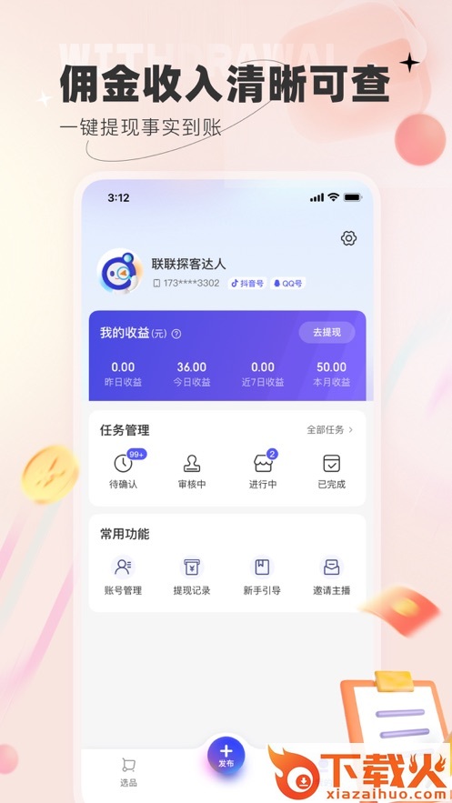 包含吃喝玩乐高佣任务,多平台内容分发赚取佣金,达人等级。
