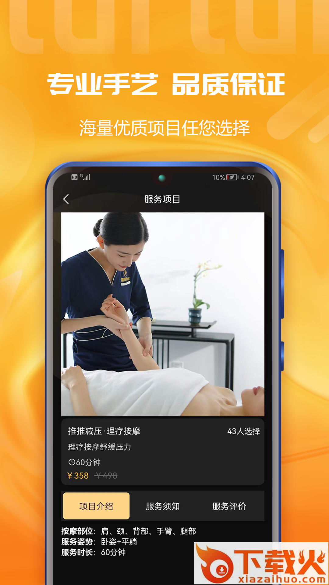 4、上门服务:用户可以根据自己的身体情况,选择合适的服务项目,选择心仪的理疗师,24h极速上门到家