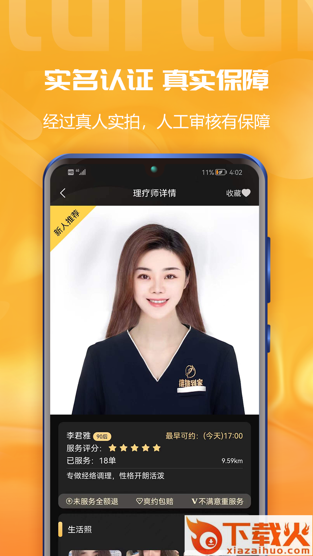 2、理疗师认证:理疗师全部经过头像认证,经过真人实拍